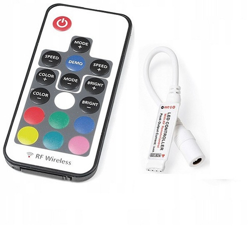 میزان شدت جریان خروجی 4 آمپر، ولتاژ ورودی 12 ولت DC، توانایی راهاندازی انواع ال ای دی RGB، ریموت کنترل 17 کلید، درایور با ورودی آداپتور 12V و ورودی 4 پین نوار LED RGB، دارای چشمی گیرنده کنترل از راه دور رادیویی ، کاملا جمع و جور و کوچک ، ریموت کنترل دارای باتری است.