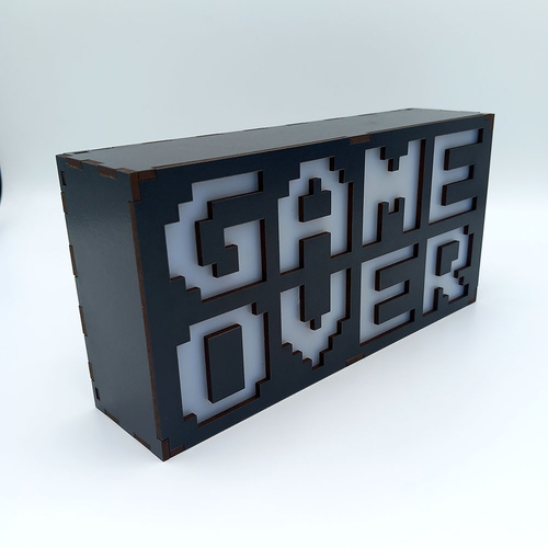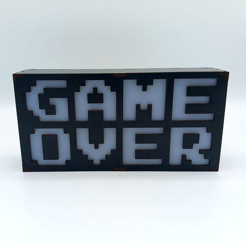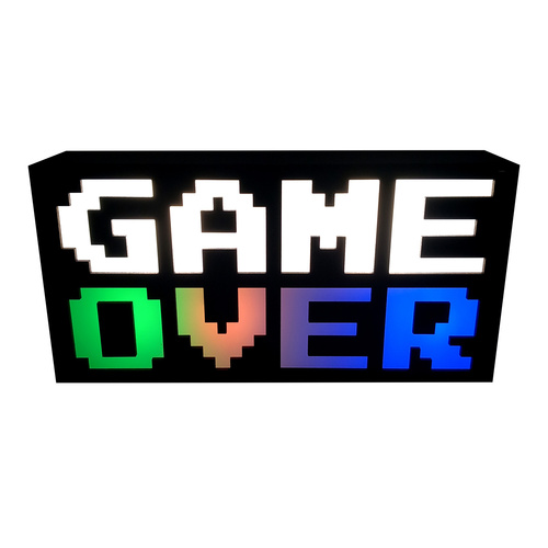 آیکون لایت GAME OVE سایز کوچک بدون کنترل، نور GAME سفید ثابت و OVER بصورت RGB و چرخشی تغییر رنگ میدهد و جلوه زیبایی دارد. سوکت تعبیه شده Micro USB است و ولتاژ کار این جعبه 5 ولت 500 تا 1000 میلی آمپر کافی میباشد.