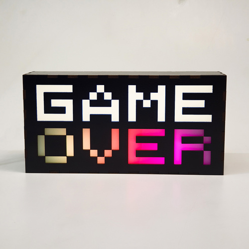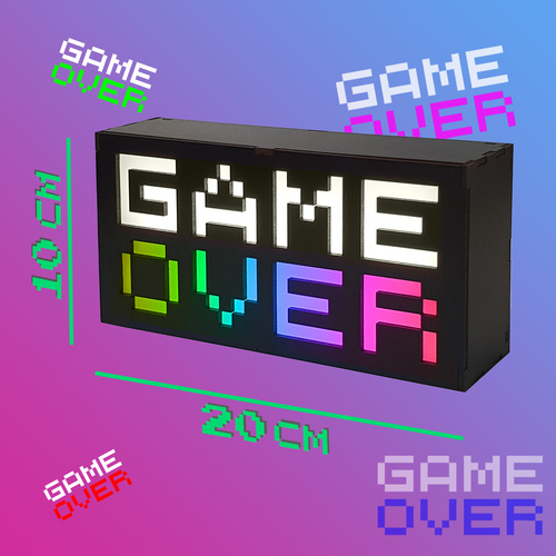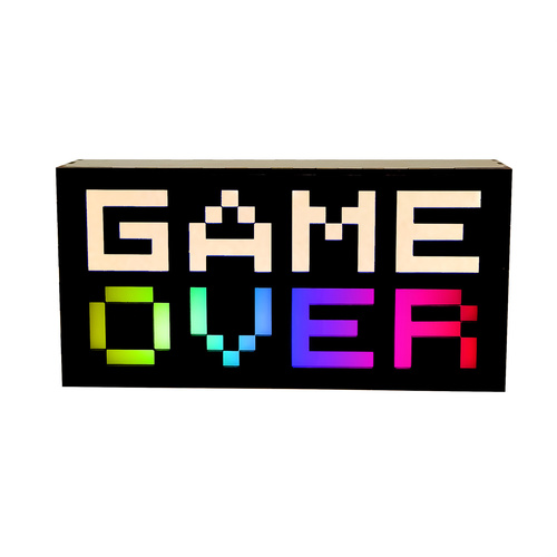 آیکون لایت Game Over دارای ورودی USB یکی از پرطرفدارترین لوازم جانبی گیمینگ است که ما را به یاد زمانی میاندازد که در بازیهای قدیمی بازنده میشدیم و عبارت Game Over روی مانیتور رایانه نمایش داده میشد. میتوان این محصول را به خاطر این نوع شیوه طراحی، روی میز یا هر سطح صاف دیگری قرار داد. ،این مدل از محصول دارای پنل تک رنگ در قسمت بالا ( کلمه GAME ) و پنل هفت رنگ در قسمت پایین ( کلمه OVER ) می باشد. این محصول به همراه کابل USB بوده و فاقد ریموت کنترل می باشد.
