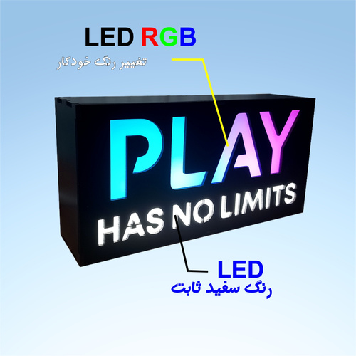 آیکون لایت Play Has No Limits (بازی محدودیتی ندارد) شعار سونی برای کنسول Ps5 است ، این آیکون لایت با ام دی اف 3 میل ساخته شده ، قسمت PLAY از LED RGB خودکار و نیاز به کنترلر ندارد و LED ها به صورتی کنار هم قرار گرفته که رنگها باهم ترکیب میشود، قسمت Has No Limits از LED سفید استفاده شده است و ثابت است.