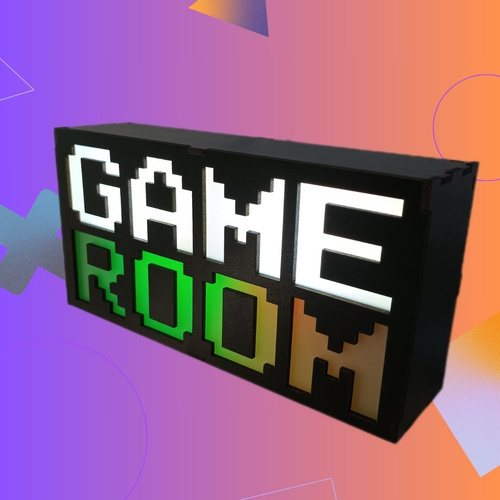 آیکون لایت GAME ROOM دارای ورودی USB یکی از پرطرفدارترین لوازم جانبی گیمینگ است میتوان این محصول را به خاطر این نوع شیوه طراحی، روی میز یا هر سطح صاف دیگری قرار داد. ،این مدل از محصول دارای پنل تک رنگ در قسمت بالا ( کلمه GAME ) و پنل هفت رنگ در قسمت پایین ( کلمه ROOM ) می باشد. این محصول به همراه کابل USB بوده و فاقد ریموت کنترل می باشد.